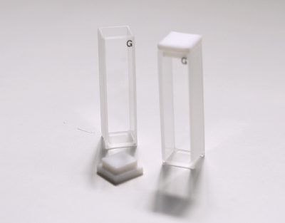 CUBETA VIDRIO UV 0.35ML10MM PASO OPTICO C/TAPA PTFE F/REDONDO DIM EXT. 45X12.5X3.5 BSDLAB 1001-101